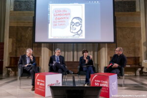 Particolarmente significativa è stata la proiezione del video con le testimonianze di alcuni protagonisti della storia di Aster Coop, seguita da un momento simbolico che ha riunito sul palco alcune delle persone che hanno contribuito a costruire questo percorso.