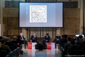 A rendere ancora più originale il racconto della serata è stato anche il contributo dell’art illustrator Arianna Ruffinengo, che ha accompagnato l’intero evento traducendo in tempo reale, attraverso vignette, i passaggi più significativi degli interventi e del confronto tra gli ospiti.